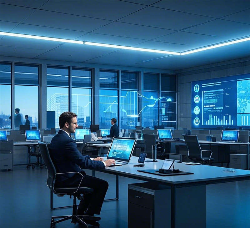 前臺接待室以懸浮式前臺和全息投影動態(tài)logo為核心,金屬質(zhì)感墻面與燈光效果結(jié)合,營造出未來之門的第一印象。敞開式辦公室通過數(shù)據(jù)流全息屏幕和智能辦公桌,打造高效協(xié)作的數(shù)字化辦公環(huán)境。經(jīng)理辦公室采用全景落地窗和智能辦公系統(tǒng),簡約大氣,兼顧商務(wù)與舒適。總裁辦公室位于頂層,全景視野與奢華材質(zhì)相得益彰,藝術(shù)裝置彰顯領(lǐng)導(dǎo)風(fēng)范。