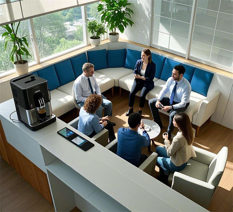 會議室配備全息投影和智能會議系統(tǒng),為高效會議和創(chuàng)意碰撞提供空間。茶水間以智能咖啡機(jī)和舒適座椅為主,結(jié)合綠植點綴,打造輕松社交的休閑區(qū)域。休息區(qū)融入虛擬現(xiàn)實設(shè)備,讓員工在沉浸式體驗中放松身心。走廊通過燈光效果和藝術(shù)裝置,展現(xiàn)企業(yè)文化,實現(xiàn)空間過渡。