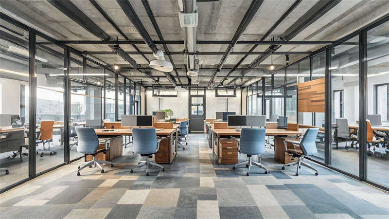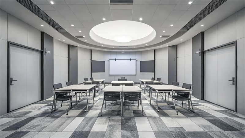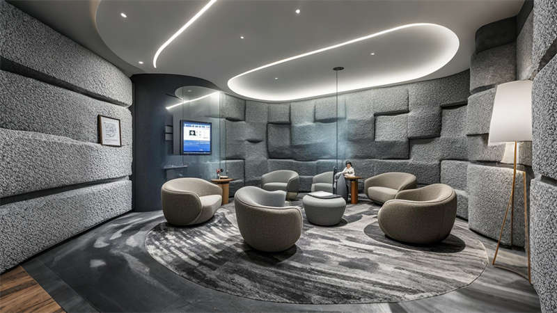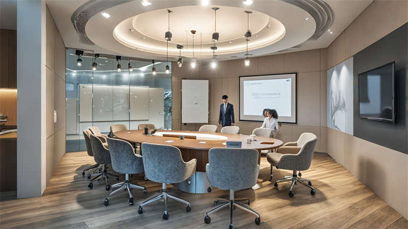 照明設(shè)計采用 3000K-4000K 色溫分區(qū)控制,重點區(qū)域設(shè)置磁吸軌道燈滿足展陳需求。聲學(xué)處理方面,關(guān)鍵會議室采用雙層中空玻璃與吸音毛氈墻面,確保 45 分貝以下靜音標準。全案貫徹 LEED 認證標準,90% 建材達到環(huán)保回收要求,實現(xiàn)美學(xué)價值與實用功能的有機統(tǒng)一。