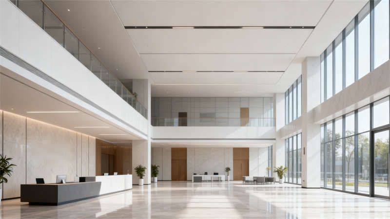 本設計圍繞蚌埠地域人文特質與現代辦公需求展開,在辦公樓裝修中實現功能與美學的深度融合,確保外觀與室內風格高度統一,呈現連貫的項目整體感。