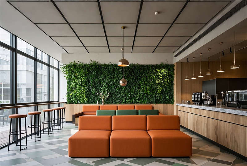 本案為 6000 平方米現(xiàn)代化科技辦公樓裝修項目,設(shè)計采用 ' 未來辦公生態(tài) ' 理念,以藍灰主色調(diào)構(gòu)建專業(yè)商務(wù)氛圍。空間規(guī)劃突破傳統(tǒng)格局,大堂設(shè)置 10 米挑空 LED 藝術(shù)裝置墻,智能光控系統(tǒng)實現(xiàn)晝夜模式切換。開放式辦公區(qū)采用模塊化組合家具,集成無線充電、智能升降等人性化功能。會議室配置可觸控霧化玻璃隔斷系統(tǒng),實現(xiàn)空間靈活轉(zhuǎn)換。特別設(shè)計的階梯會議中心配備全景聲控系統(tǒng),墻面采用吸音穿孔鋁板確保會議私密性。環(huán)保理念貫穿始終,選用零甲醛板材和可回收地毯,屋頂花園配置雨水收集系統(tǒng)。燈光設(shè)計采用色溫可調(diào) LED 光源,通過智能中控系統(tǒng)實現(xiàn)場景模式一鍵切換,打造高效、舒適、可持續(xù)發(fā)展的新型辦公生態(tài)圈。