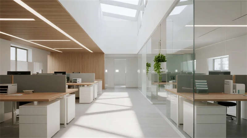 內(nèi)部空間聚焦人性化體驗(yàn):開放式辦公區(qū)借由落地窗引入充沛自然光,搭配原木元素軟化工作氛圍;會(huì)議室以通透玻璃隔斷實(shí)現(xiàn)靈活協(xié)作;休閑咖啡區(qū)則通過暖調(diào)燈光與弧形家具構(gòu)建松弛社交場(chǎng)景。屋頂花園將城市景觀轉(zhuǎn)化為員工休憩靈感源,模糊室內(nèi)外界限。
