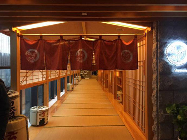 通常是門口有一個(gè)3段式,或者是4段式的暖簾,寫上自己的店名,中文日文,或者是其他,然后通向廚房的門口掛上一個(gè)暖簾。