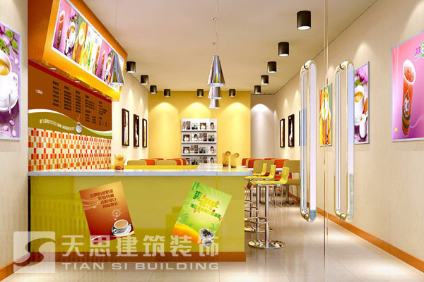 奶茶店裝修公司中,小型奶茶店面裝修并不是難題。從常例上我們可以看到,奶茶店一般都是面向學生跟青年人,那么除了地段會占據一部分的因素,而裝修上更要向青年朋友看齊。雖說奶茶店裝修可以花哨一些,但是不能夠過于鋪張,通過墻壁以及整體的店面改變,可以轉向一種可愛、向往青春、充滿活力的方式。那么墻壁上一定要有可愛的手繪壁會或者掛飾,更要在整體的顏色上選擇亮麗。也可以用現成的墻紙,最好還是通過整體的可愛來吸引女生,畢竟奶茶店的主要消費方向還是女生。