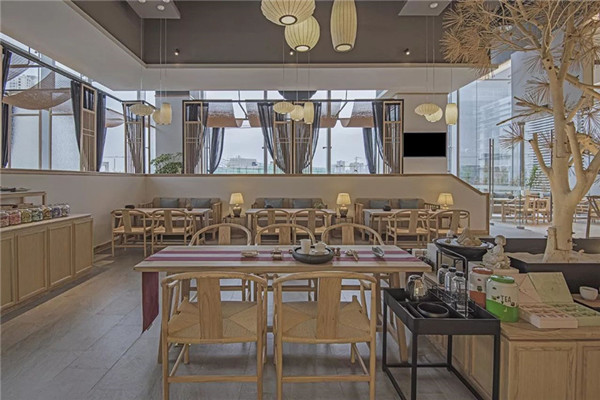 茶藝館的空間設(shè)計(jì)要與其總體設(shè)計(jì)風(fēng)格相匹配。在空間布置上可通過虛的手法遮擋視線,似隔非隔,隔中有透,實(shí)中有虛。例如利用布慢、漏墻、珠簾、屏風(fēng)、竹籬、木柵等緩沖通道與視線;又如,利用通道的回繞曲折相通,轉(zhuǎn)身回眸處別有一方天地。適當(dāng)?shù)姆指暨€可滿足部分客人不想被打擾的心理,這就是所謂的"園必隔"。
