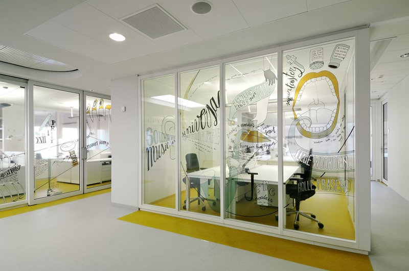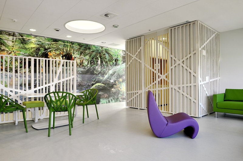 成功的設計應將吸引各個年齡段的孩子們,對醫(yī)院留下親切的善意的印象.室內裝修,導視系統(tǒng)和藝術景觀必須盡可能統(tǒng)一考量,組織成一個整體.三個方面要有相輔相成的戰(zhàn)略,整體上和諧統(tǒng)一,而不是把不同的幾套設計生硬地放在一起.