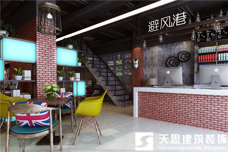 合肥網(wǎng)咖裝修:美式風(fēng)格咖啡廳網(wǎng)吧室內(nèi)空間設(shè)計(jì)方案(含效果圖