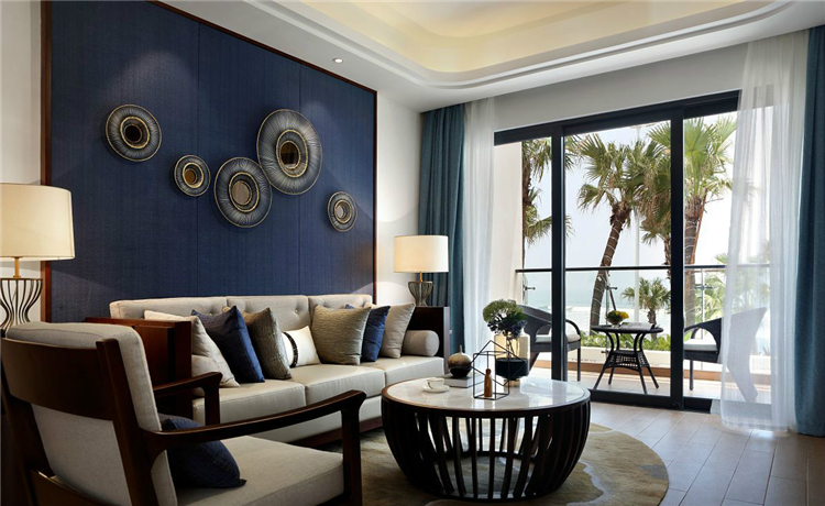 對于海邊的酒店套房,最好選與大海相關(guān)的裝修這套房間裝修改用藍色元素落地窗外就是大海,迎著海風瞭望海邊,整體裝修帶有地方特色,軟裝擺設(shè)則偏簡潔大方,從視覺上給人一種舒服的感受。