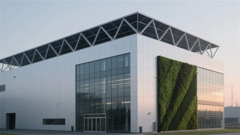 這個潔凈車間廠房,以未來工業美學為語言,詮釋新能源智造的全新范式。通透的玻璃幕墻與菱形光伏屋頂交織,將自然光引入車間,與冷調LED光帶共構科技與生態的平衡。核心生產區如同精密運轉的“硅基心臟”,層流送風系統無聲守護著無塵環境,自動化設備在藍色光暈中有序協作,AGV穿梭的軌跡編織出無聲的效率詩篇。