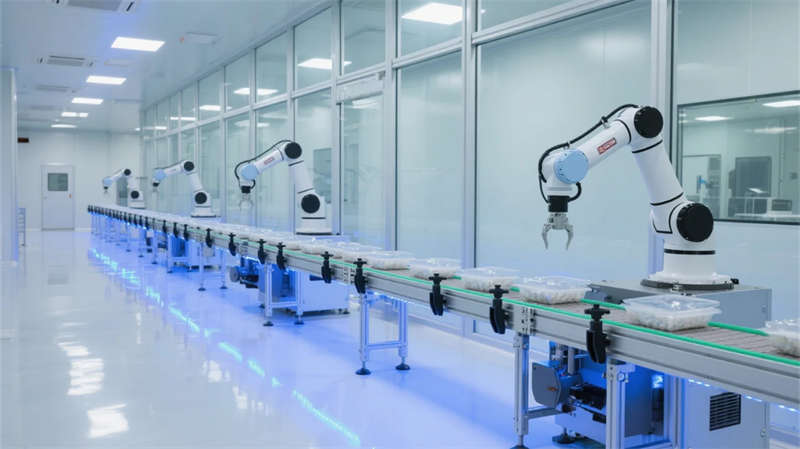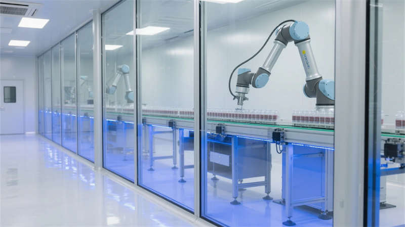 物流中庭的挑空設計打破廠房尺度壓迫感,懸掛式數據看板如抽象藝術品,與玻璃穹頂投下的天光共構科技禪意。研發區可移動實驗裝置墻體現柔性生產理念,分子結構藝術墻繪暗喻制造背后的科學探索。