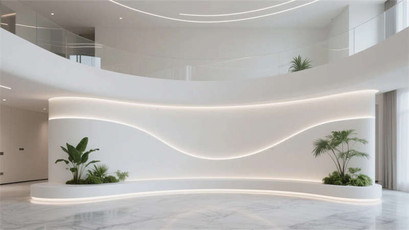 本項目以現代簡約美學重構半導體產業空間,將科技功能與人文環境無縫銜接。建筑外立面采用玻璃與金屬的碰撞,幾何切割線條傳遞工業力量感,同時通過灰白主色與局部科技藍的跳色,營造冷靜理性的視覺基調。內部空間嚴格遵循潔凈生產邏輯,千級無塵車間以純白環境保障精密工藝,研發實驗室則通過透明隔斷與智能設備凸顯技術前沿性。