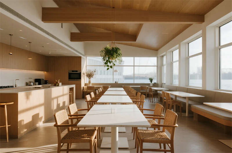該設計以“城市綠洲”為核心理念,打造兼具功能與美學的經濟型住宿空間。建筑外觀采用干凈利落的幾何切割,淺灰與玻璃材質碰撞出輕盈現代感,入口綠植墻軟化都市冷硬氛圍。內部空間貫徹簡約哲學:模塊化家具系統最大化利用面積,榻榻米客房集成儲物與休憩功能,隱藏式燈光營造舒緩氛圍。公共區域強調共享與自然連接,早餐區落地窗引入晨光,綠植點綴的休息區提供社交場景。材質選擇克制而統一,淺木色、微水泥與亞麻織物構成低飽和度基調,局部點綴抽象線條藝術,呼應合肥現代都市氣質。設計聚焦高效運營與人文關懷,通過智能分區和環保細節,為旅客提供回歸本質的寧靜棲居體驗。