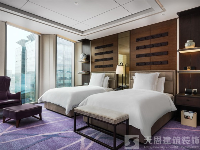 配套設(shè)施:客房的配電設(shè)計(jì)要細(xì)致周到,方便使用.配電箱通常結(jié)合空調(diào)檢修孔人設(shè)計(jì)在吊頂里.衣櫥的深度要大于0.6米,總寬度要大于1米.此外還要有存放備品的地方.壁櫥內(nèi)應(yīng)有良好的照明設(shè)計(jì).保險(xiǎn)柜可設(shè)在衣櫥或電視柜下面.寬帶網(wǎng)插座通常結(jié)合手機(jī)充電電源設(shè)置在化妝臺(tái)抽屜里.套間設(shè)計(jì):套間常設(shè)在走廊的端部或建筑的轉(zhuǎn)角處(如四季大酒店).在套間的起居室和臥室之間設(shè)一個(gè)帶門(mén)的小過(guò)廳,這樣可以在必要時(shí)把每間房分租出去.每間客房最好有獨(dú)立的衛(wèi)生間,以便單獨(dú)出租時(shí)使用.