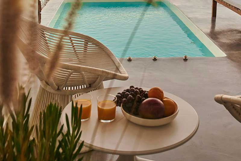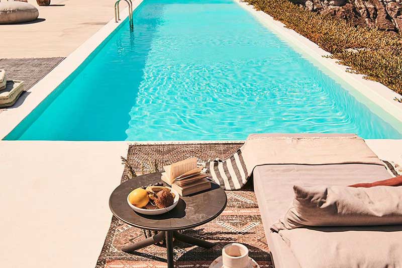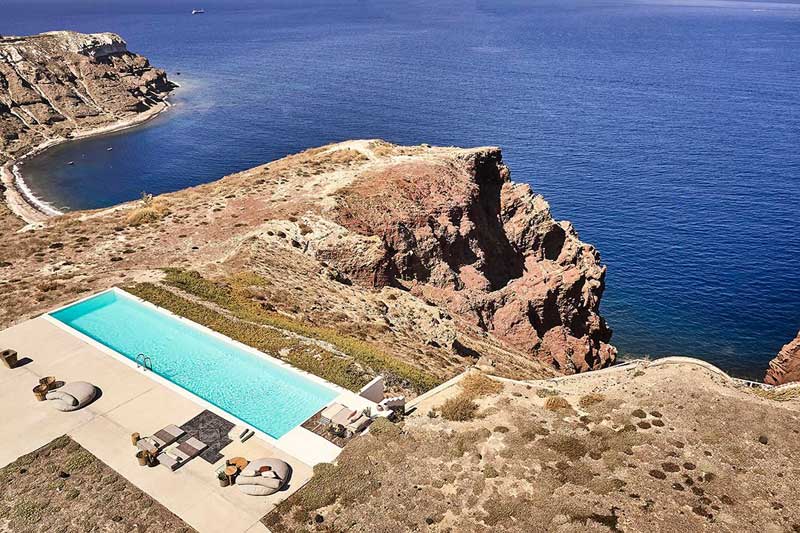 自然生態(tài)度假酒店坐落在圣托里尼島新月形狀的懸崖邊上,預(yù)計(jì)于今年5月初開放。在阿克羅蒂里古城附近,游客可以看到來自破火山口附近的碧藍(lán)海水和斑斕陡峭的熔巖層。這片建筑所帶來的與人類密切相關(guān)的體驗(yàn),進(jìn)一步點(diǎn)亮了周邊未經(jīng)雕琢的自然世界。復(fù)古飾品、大地色調(diào)和手工家具裝點(diǎn)了酒店的15間套房,筆直的線條、圣潔的白色與靈活的曲線等典型的圣托里尼建筑元素也在酒店中得以充分展現(xiàn)。在這里,人們可以盡享奢華的希臘式住宿,品嘗當(dāng)?shù)鼐虏穗龋惺軛趹已逻叺娜坝境兀趹敉馍缃恢行膮⒓痈鞣N有益身心的活動。