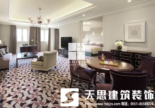根據(jù)酒店裝修的功能性質(zhì)以及人在空間中的活動特點,對空間動靜的掌握有助于空間整體關(guān)系的合理配置。比如:公共空間中的大廳接待室、多功能廳等,客房空間中的起居室、餐廳、陽臺等屬于流動性大、公開程度高、噪聲高的“動”空間,而辦公室、包房、 臥室、書房等屬于流動性小、私密程度高、噪聲低的“靜”空間。此,在酒店設(shè)計時應(yīng)考慮動靜性質(zhì)的不同,在空間位置、大小、形狀及裝飾語言上進行分類處理等。室內(nèi)空間的容量關(guān)系包含單體容量、整體容量以及序列容量三方面的內(nèi)容。單體容量指人在一個空間中完成單個動作所需的空間容量;整體容量指人在同一空間中完成系列動作所需的空間容量;序列容量指人在幾個不同空間中完成一個或幾個動作所需的流通空間總量。