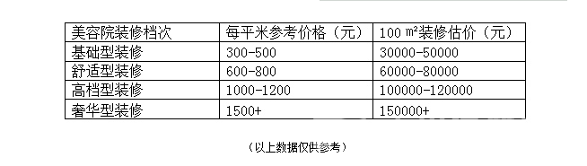 以上是我們根據(jù)當(dāng)前的市場(chǎng)行情,所制定的一份參考裝修價(jià)格表,當(dāng)然在實(shí)際當(dāng)中,根據(jù)地理位置以及材料選擇,還有裝修風(fēng)格等各種因素,都會(huì)對(duì)美容院的裝修價(jià)格起到影響,所以美容院裝修要花多少錢(qián)還得以實(shí)際情況為準(zhǔn)。