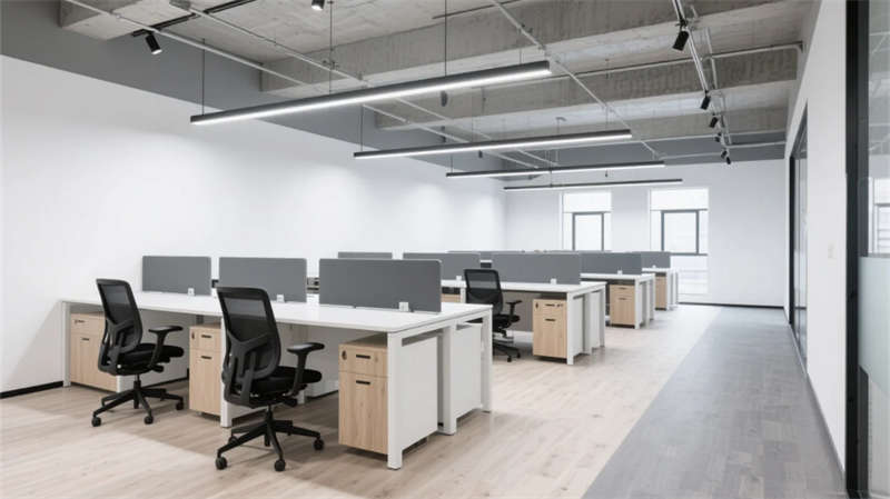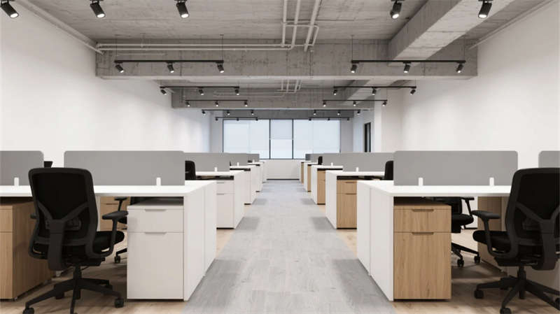 步入空間,現(xiàn)代簡約工業(yè)風(fēng)以原始肌理與智能元素碰撞出獨特韻律。淺灰水泥與原木的基調(diào)貫穿始終,裸露結(jié)構(gòu)構(gòu)件與暖光線性照明形成張力,綠植垂直裝置在冷峻材質(zhì)中注入自然呼吸感。開放式辦公區(qū)模塊化桌椅靈活組合,落地窗引入天光,軌道射燈精準(zhǔn)聚焦高效場景;獨立辦公室的磨砂玻璃隔斷兼顧隱私與通透,深胡桃木桌面沉淀商務(wù)氣質(zhì)。